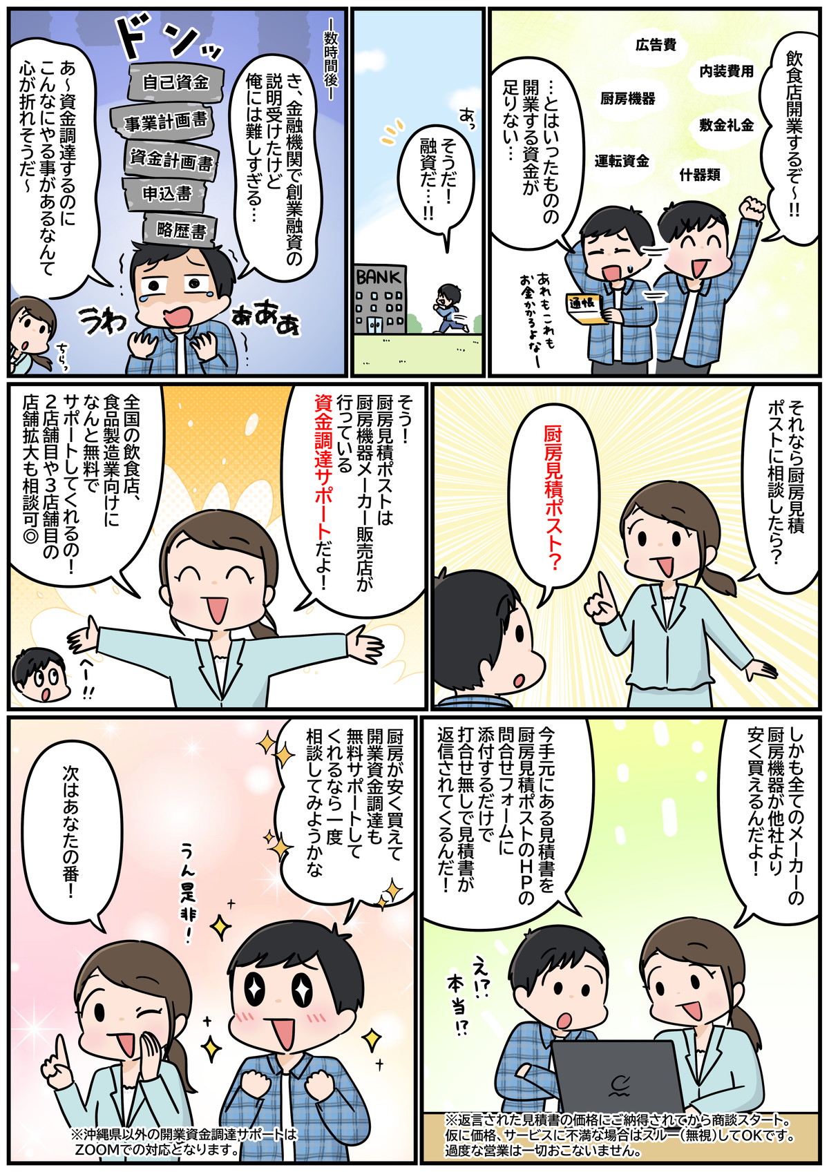但し、厨房機器を買うための資金(設備資金)に限り、無料でサポート。